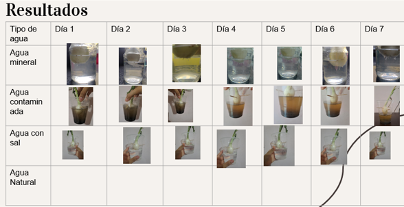 En conclusión después de observar cómo reaccionaron las cebollas en los diferentes tipos de agua, me di cuenta de que el tipo de agua sí influye bastante en su crecimiento. La cebolla en agua natural fue la que se mantuvo mejor y mostró más señales de vida. La de agua con sal no creció casi nada y hasta parecía marchita, lo cual tiene sentido porque la sal puede deshidratarla. La cebolla en agua mineral tuvo un crecimiento más o menos, quizá por los minerales, pero no fue tan buena como la de agua natural. Y la del agua contaminada... pobrecita, casi no sobrevivió. Así que sí, el agua que usamos importa mucho, hasta para una simple cebolla.